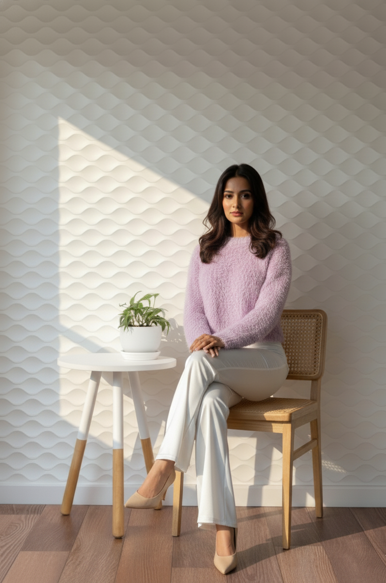 Bring a soft yet statement touch to your winter wardrobe with Donne Tenaci’s lavender winter top. Crafted from premium faux-fur fabric, this cozy piece features voluminous full sleeves, a round neckline, and a snug yet relaxed fit for ultimate comfort and style. The soft, fuzzy texture adds dimension and a high-fashion appeal to your look. Ideal for brunches, casual meetings, or evening outings — pair it with tailored pants or skirts to create your perfect winter ensemble.