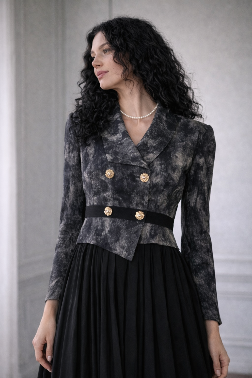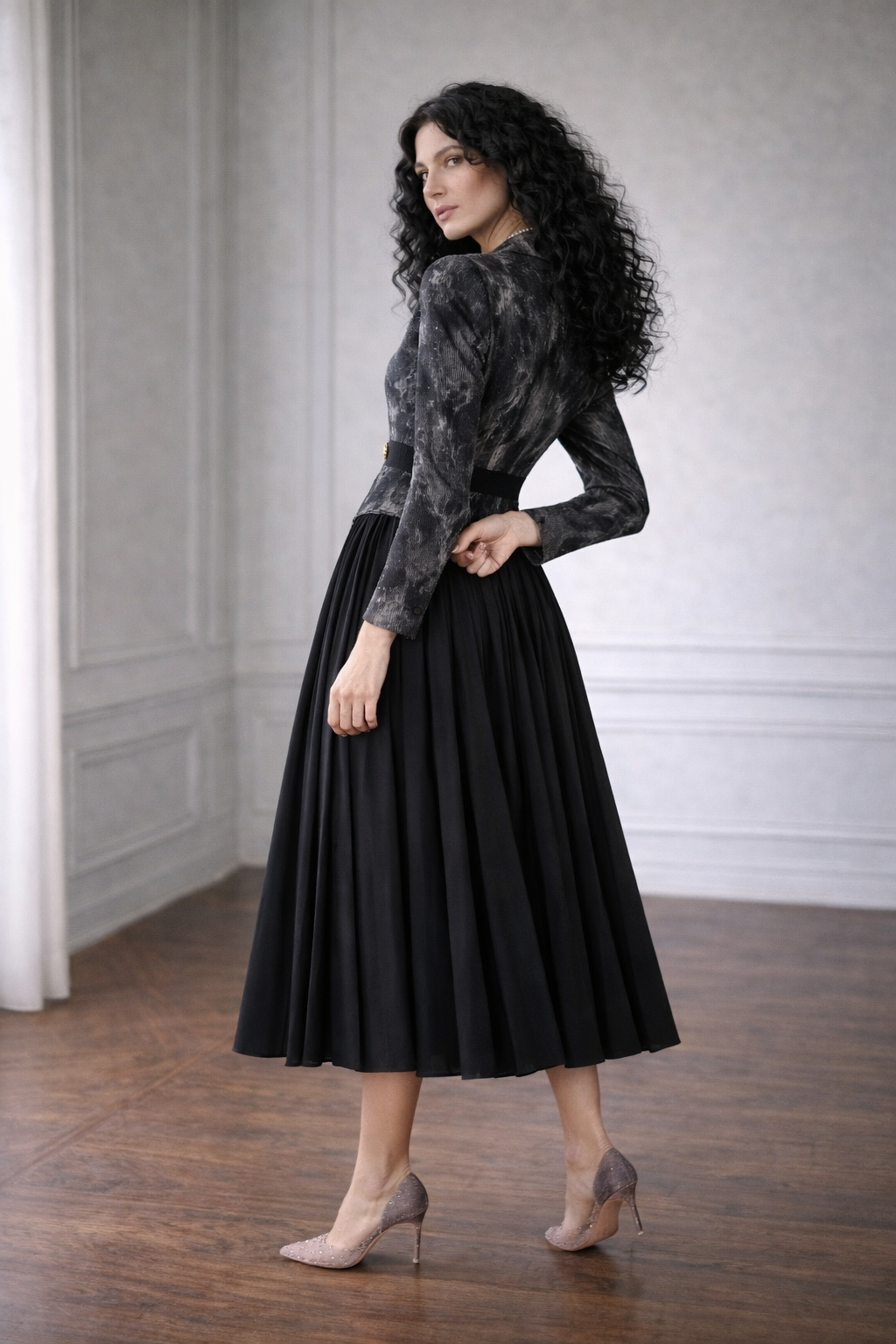 Elevate your wardrobe with this elegant vintage-inspired midi dress, designed to offer both style and comfort. Featuring a structured bodice with a flattering waistline, this dress enhances your natural shape without compromising on ease of wear.