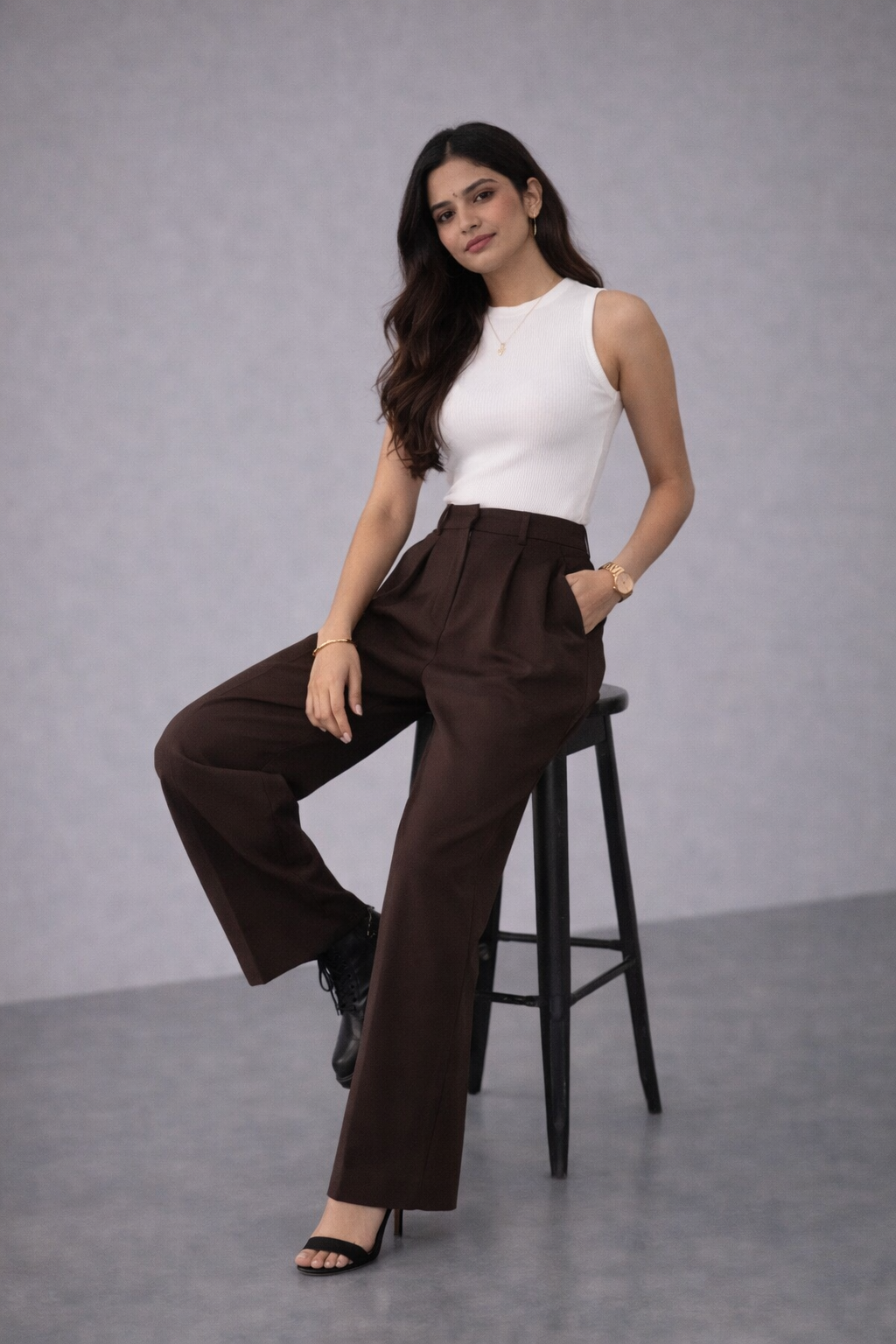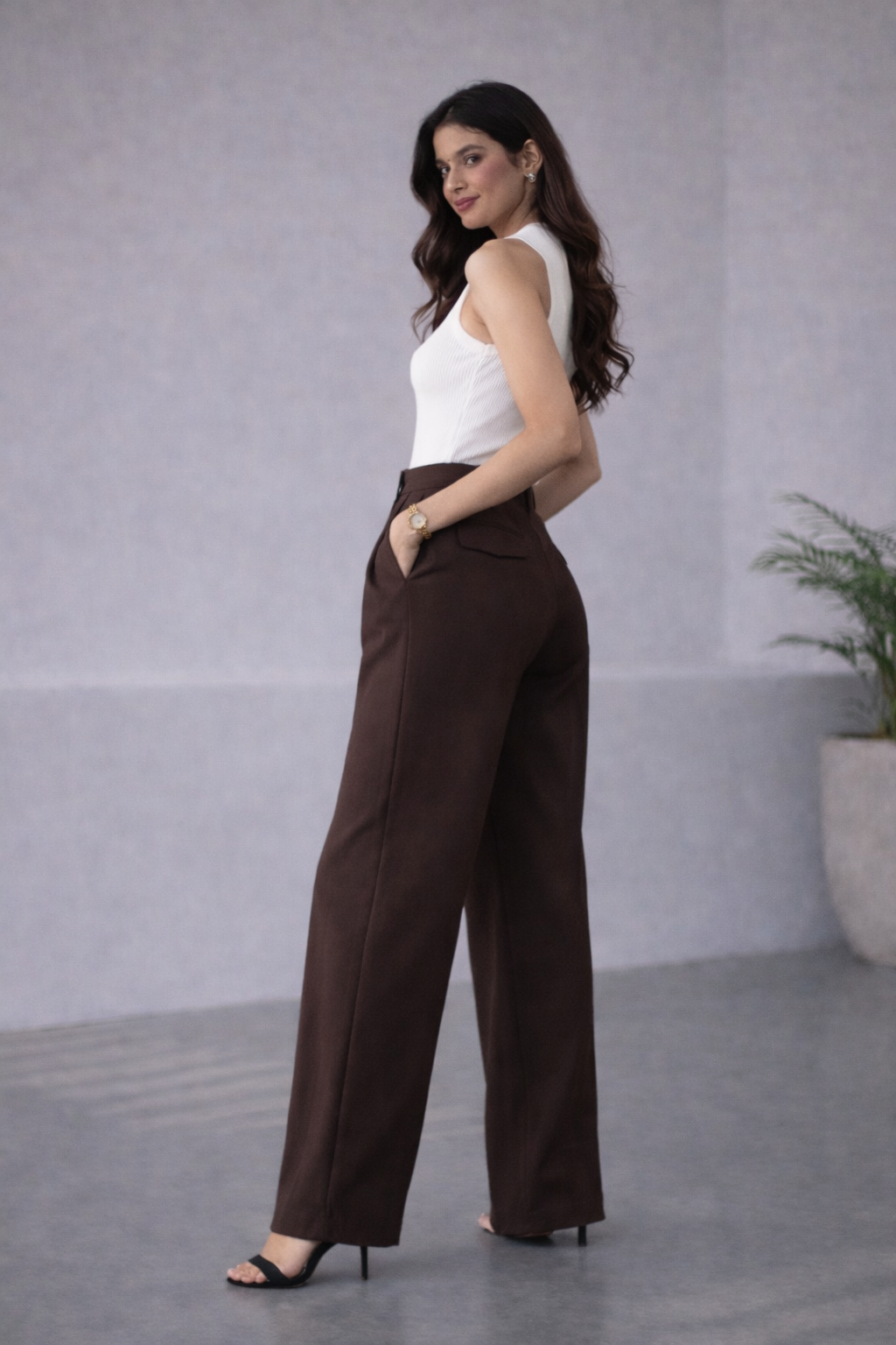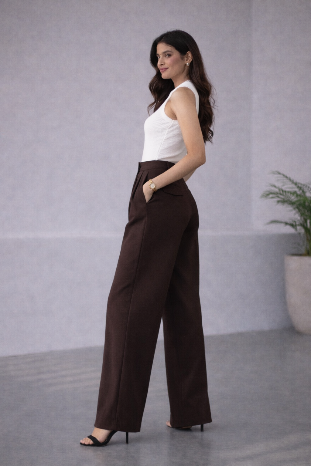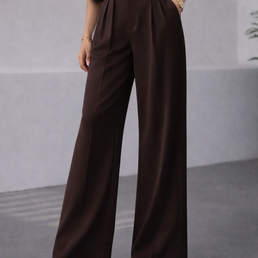 The high-waist fit combined with front pleats creates a structured yet relaxed look, making them perfect for both casual outings and elevated styling. Comfortable, breathable, and versatile — these pants are your go-to for all-day wear without compromising on style.