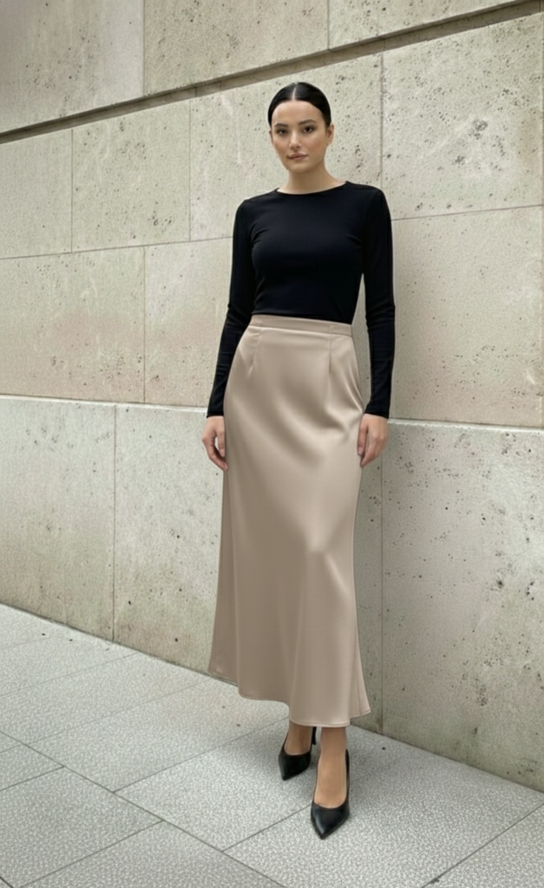 Experience the perfect blend of sophistication and comfort with Donne Tenaci’s satin maxi skirt. Crafted in a smooth, lustrous satin fabric, this skirt features a flattering high-waist fit and a fluid fall that enhances natural movement. Its minimalist design makes it easy to dress up or down — pair it with bodysuits, tops, blouses, or sweaters for a versatile, polished look. Soft, lightweight, and stylish, this skirt is an essential wardrobe piece for women who love timeless elegance.